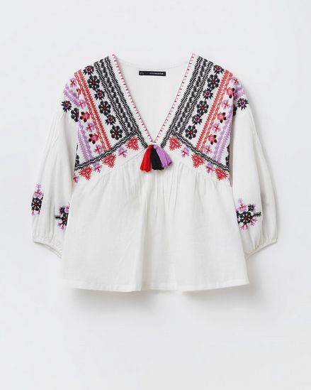 Las camisetas holgadas con bordados de estilo bohemio nunca pasan de moda, y aportan un toque especial a cualquier look. En Sfera puedes llevarte este diseño de manga corta y corte amplio con bonitos bordados de colores, y cuello en forma de pico con orlas decorativas a contraste. Es una prenda ligera, cómoda y favorecedora, hecha en 100% algodón blanco. Puedes elegir entre varias tallas por un precio rebajado a 19,99€. Este es el link.