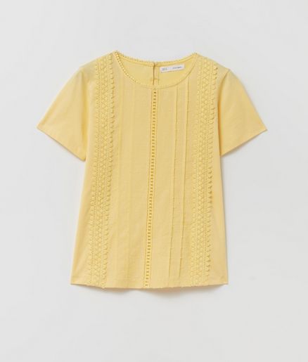En Sfera también podemos encontrar camisetas especiales, con un toque muy romántico y femenino, pero perfectas para el día a día. Esta camiseta plumetti es de 100% algodón, por lo que es especialmente agradable y fresca para el verano. Tiene cuello caja, manga corta y un botón en la nuca. Lleva detalles de encaje en la parte delantera, y tiene un corte fluido y muy cómodo. Además, es de algodón sostenible. Hay cuatro colores disponibles: rosa, verde, amarillo y blanco. El precio es de 7,99€, y si te gusta puedes entrar aquí.