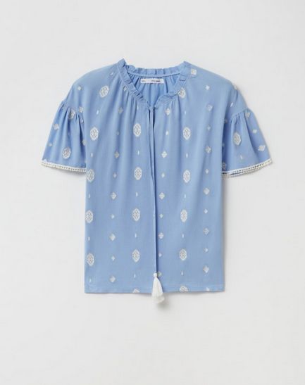 Otra camiseta ideal con ese estilo hippy que tanto nos gusta, es esta con corte fluido y unas bonitas mangas sueltas, con mucho movimiento y terminadas con encaje a contraste. Tiene el cuello en forma de pico con una lazada con borlas, y toda la prenda está decorada con bordados étnicos. Está disponible en rosa claro, azul claro y color crudo, y la puedes adquirir en Sfera por 9,99€, un precio realmente tentador. Aquí te dejamos el link.