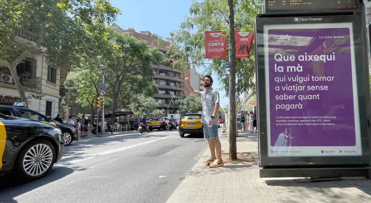 Estos textos se muestran también con un contundente mensaje: «El 1 de octubre entra en vigor la nueva operativa que impide seguir operando a las VTC y deja al taxi tradicional como la única opción en Barcelona». La campaña se ha iniciado en vísperas de la convalidación de este decreto y proseguirá después.