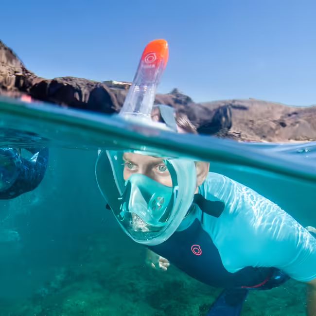 Ofrece una mejor experiencia al ver y respirar de manera natural. Gracias a la visión panorámica y a la posibilidad de respirar por la nariz y por la boca, la exploración del universo acuático es aún más accesible con esta máscara. La tienes ahora por 24,99 euros.