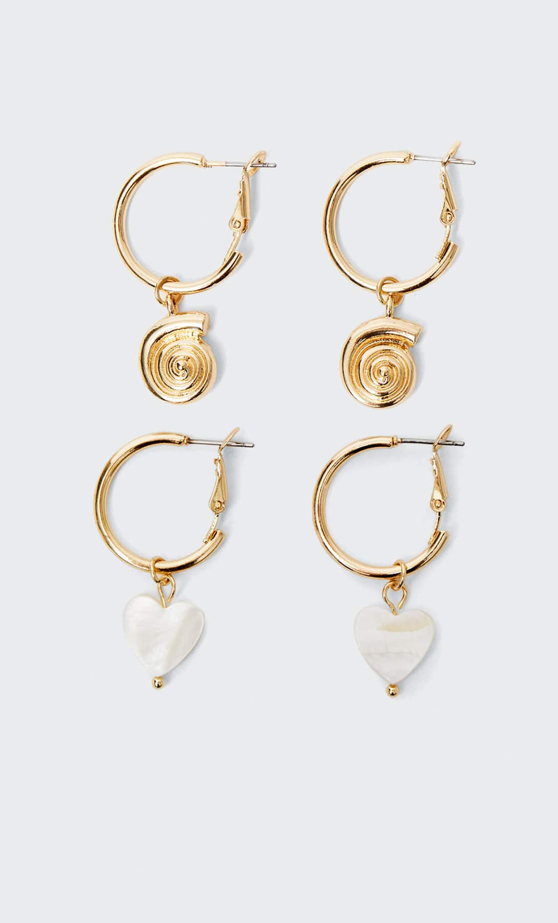 Este set es algo más reducido porque solo vienen dos pares de pendientes, pero tiene el mismo precio que los anteriores y es perfecto para ponerle el broche de oro a un look veraniego a base de vestido y sandalias.