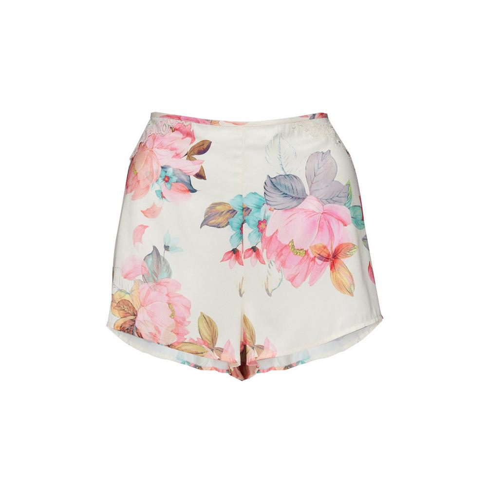 Para ir a juego con la camiseta de tirantes de satén con estampado floral, encontramos el pantalón corto blanco de flores. Lo encontraréis en la web de Primark a un valor de 4 euros. Como mencionamos el satén es un tejido muy adecuado para un pijama para los días caluroso porque es muy suave y fresco. Por este motivo es una buena opción si deseas dormir fresca y toda la noche del tirón.