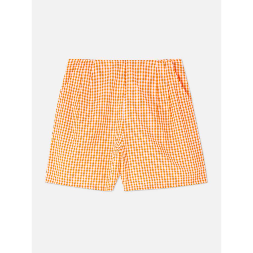Seguimos con el listado de prendas de Primark, en este caso elegimos prendas que son frescas para soportar las altas temperaturas de este verano. Vimos este pantalón corto a cuadros vichy en color naranja a solo 13 euros. Este prenda también se combina con camisetas en negro, blanco, marrón o rosa, o bien con tops y hasta con unas sandalias planas que puedes encontrar en la tienda.
