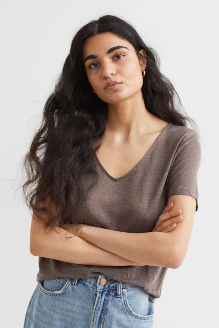 El lino es el tejido más recomendable para el verano, porque es muy ligero y deja al cuerpo transpirar. Por eso, una camiseta de este tipo no debería faltar en tu armario. Este modelo en concreto lo tienes disponible en varios colores.