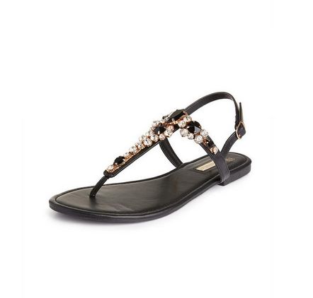Las sandalias de tiras finas son las más idóneas para looks sofisticados. Si te gusta vestir con prendas más formales y elegantes, hay un tipo de sandalias planas que pueden encajar a medida con tu estilo. El cierre en T además es diferente y tiene un toque sexy, además de ser muy frescas y casi tan cómodas como ir descalza. Para un plus de sofisticación, este modelo de Primark tiene la tira del empeine decorada con llamativos brillantes en forma de flor. Póntelas con unos shorts y una blusa bonita y causarás sensación. El precio es de 10€.
