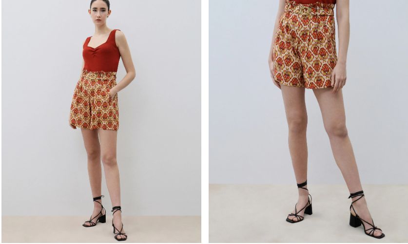 Vamos con un modelo de El Corte Inglés y de su marca Fórmula Joven, de lo más vaporosa, alegre y que encaja para cualquier situación. Además es barata, más aún con el descuento del 50%, que se queda en 14,99 euros. Es una bermuda estampada en color beige o negro de lo más confortable y es tuya en este enlace.