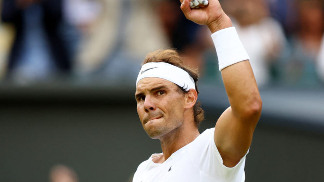 Tennis – Wimbledon – All England Lawn Tennis and Croquet Club, London, Britain – July 6, 2022 Spain’s Rafael Nadal celebrates winning his quarter final match against Taylor Fritz of the U.S. REUTERS/Hannah Mckay