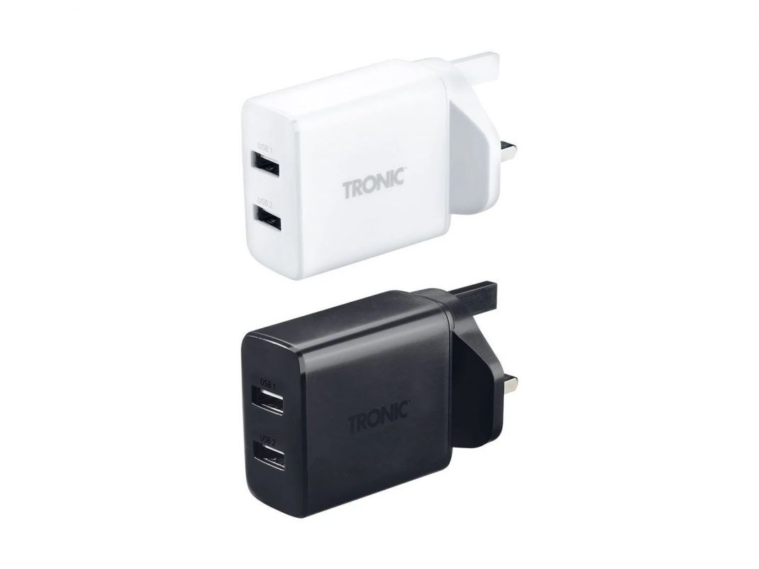 Veamos una opción para casa u hoteles, si te vas de viaje. Es un cargador de pared doble, necesario si viajas a países con este tipo de enchufes. Así no tendrás problema. Es de 24 W, con tecnología inteligente de carga rápida, válido para cargar móviles, tabletas, lectores de libros electrónicos, etc. Permite cargar hasta dos dispositivos a la vez y sirve para cargar baterías o suministrar corriente a través de una toma de corriente.