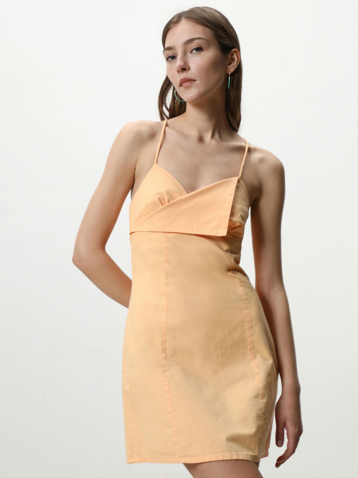Otro vestido de últimas rebajas de Lefties es este corto color naranja de tirantes con escote cruzado y detalle de solapa. El escote cruzado resulta súper favorecedor porque ayuda a que la silueta se vea más larga y estilizada. Tiene cierre de cremallera invisible en el costado y está confeccionado en un cómodo tejido de algodón 100%. Estamos ante un vestido maravilloso para los días de sol y calor. Para un look cómodo y con mucho estilo, podemos combinarlo con unas sandalias planas o unos mules. Tiene una rebaja de caso el 70% y cuesta 4,99 euros.