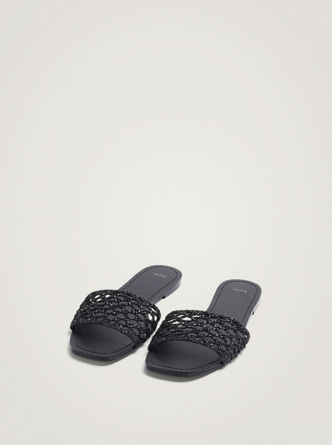 Si la anterior opción no te convence o no está disponible en tu talla pero buscas unas sandalias negras, otra buena opción que puedes encontrar en Parfois son estas sandalias planas con tira de rafia trenzada que además de ser preciosas son elegantes, cómodas y sirven para cualquier ocasión. Además, combinan con todo y quedan bien tanto con vestido como con pantalón. Están disponibles en dos colores (negro y marrón) para que elijas el que más te guste, y si precio es de 25,99 euros.