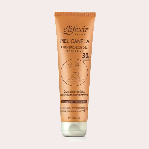 E’lifexir Piel Canela es otro de los aceleradores de bronceado más vendidos, debido a su formato en gel-crema. Su precio está actualmente en 20 euros, y es la marca favorita de Paula Echevarría en cuanto a cremas reafirmantes y anticelulíticas se refiere. Trabaja favoreciendo la producción natural de melanina e hidrata la piel profundamente, para ayudar a conseguir un color natural, duradero e intenso.