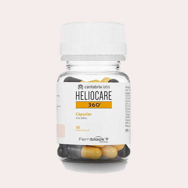 En formato cápsulas nos encontramos Heliocare 360º, otro de los mejores aceleradores de bronceado que existe en el mercado. Otro de los complementos ideales para las mujeres que quieren proteger su piel, previniendo así el fotoenvejecimiento, la aparición de manchas y muchas alteraciones cutáneas. También tiene función antioxidante y fotoinmunoprotectora. Además, es apto para todo tipo de pieles.