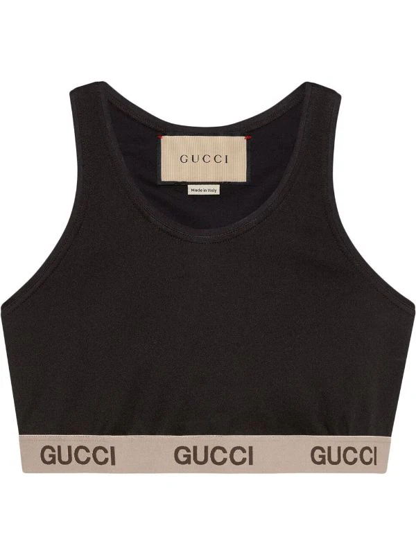 Para las fanáticas de llevar tops, os presentamos la opción más accesible que nos ofrece la marca italiana. El top de punto técnico es uno de los productos más de moda, ya que ofrece la elegancia de Gucci con la comodidad de la ropa de deporte, confeccionado en punto técnico en negro, este top incorpora el estampado de inscripción Gucci sobre la cintura elástica, con una longitud de 26 cm y hecho en Italia es perfecto para las noches de verano o para una fiesta con amigos.