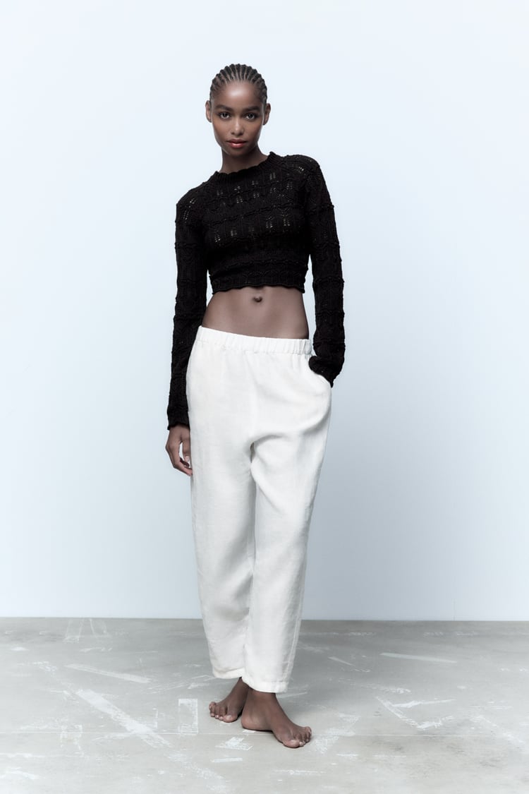 En la nueva colección de la firma española de moda no todo son vestidos, también nos sorprende con este llamativo jersey de punto de diseño crop y con la espalda totalmente abierta.