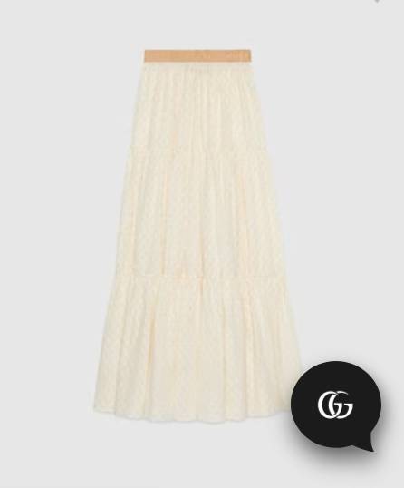 Perteneciente a la colección Love Parade, está confeccionada con tejidos frescos y en tonos muy suaves. Una falda de color marfil confeccionada con encaje y rematada con cintura elástica, hecha en Italia.