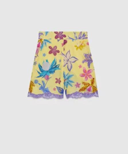 Impresionante seda de algodón en color amarillo, con un original estampado floral de palmera, rematado con encaje en la pernera y con cintura alta. El precio de este pantalón es de 790 euros.