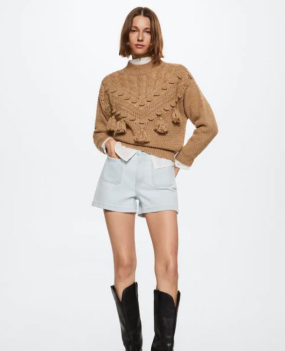 Si quieres comprarte un jersey, estamos convencidos de que no vas a encontrar uno más bonito que este. Destaca por tener un tejido de punto calado y unos bonitos detalles de pompones. Además tiene un cuello tipo perkins y la manga larga. Su precio es de tan solo 39’99 euros.