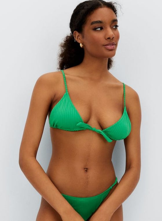Si buscas un bikini de color verde que tenga un top de lazo, deberías de pasarte por cualquiera de las tiendas de Stradivarius. Y todo porque acaban de poner a la venta este que puedes ver en la imagen y que justo cumple con estas dos características. Tiene un precio de 5’99 euros cada parte.