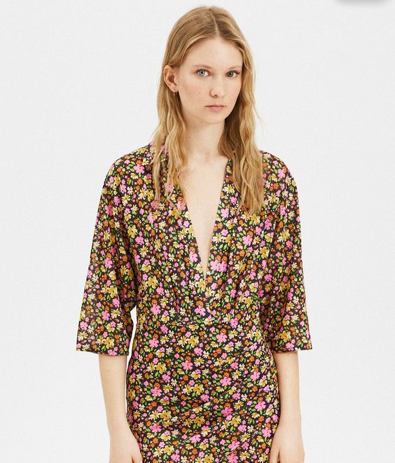 La gran mayoría de vestidos que suelen encontrarse en cualquiera de las tiendas que Pull&Bear tiene repartidas a lo largo del país suelen tener unos diseños muy bonitos. Pero es cierto que cada cierto tiempo sacan a la venta uno que es muy especial. Y eso es precisamente lo que ocurre con este que puedes ver en la imagen. Se trata de una prenda que tiene un estampado de flores muy elegante y que tiene un efecto muy especial gracias al contraste que crea la manga corta con el cuello de pico. Además, está rebajado un 70% y su precio se queda en tan solo 5’99 euros. A continuación te mostramos muchas otras prendas y complementos que merece la pena que veas.
