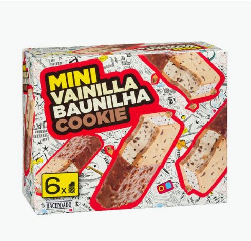 Es habitual comprar helado en tarrina o de corte, pero también en porciones individuales y así poder incluso sacar a la calle antes de salir de casa o llevar en una nevera portátil. Y muchos prefieren un helado tipo sándwich, que lo toman más bien como tentempié, que una tarrina o un polo. Pues esta opción de Hacendado es perfecta y barata. Son 6 unidades con una galleta deliciosa y en una parte de vainilla y otra de cookie. No se puede pedir más. Bueno sí, el precio: 1,75 euros.