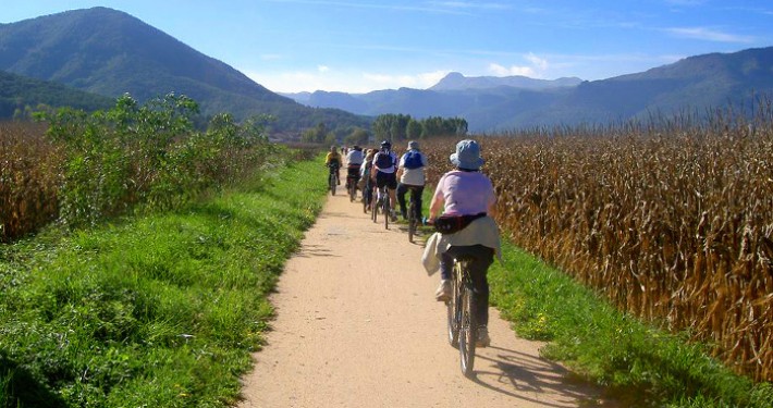 Esta ruta se encuentra en la provincia de Girona y recorre 97 km de parajes preciosos. Algunos tramos pasan entre montañas y llega hasta la costa, donde se puede culminar el viaje con un chapuzón en alguna bonita cala. Recorre la zona de la Garrotxa y atraviesa ciudades como Olot y Girona, cuya visita es obligada. Excepto en las zonas urbanas, el trazado es seguro y sin apenas coches en todo el recorrido.