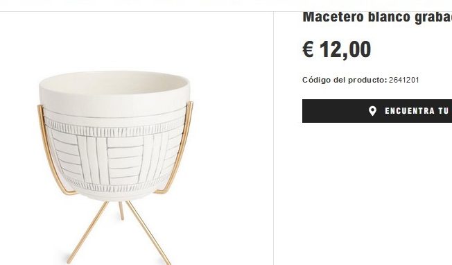 Este macetero grabado de color blanco, se caracteriza por ser unos de los mas solicitados en este mega oferta. Además, gracias a su diseño y estilo es perfecto para la decoración interior de nuestra casa. La base del macetero es un soporte dorado que está fabricado en color dorado, perfecto para combinarlo con otro producto de nuestra casa. Así que anímate a llevarte esta mega oferta que está ofreciendo Primark por su página web por solo 12,00 euros.