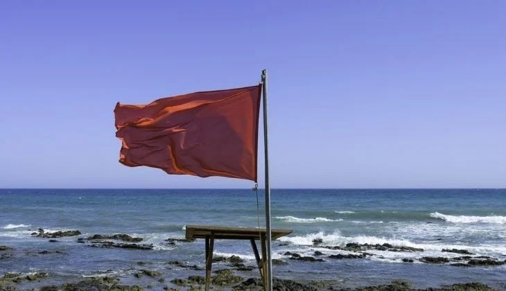 En una playa aparecen diferentes banderas que indican el estado del agua. Las más comunes son la bandera verde, la amarilla y la roja. En el caso de que esté verde, te puedes bañar sin problemas, teniendo precaución con la bandera amarilla. Si aparece una roja, el baño está prohibido terminantemente.