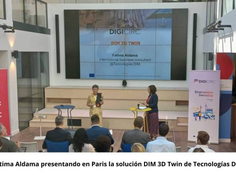 Tecnologías Dim pyme innovadora y empresa de base tecnológica ha presentado con éxito la solución “DIM 3D Twin” en Paris, en la Demoday del evento final del Programa de Aceleración de la Bioeconomía (DigiCirc), donde ha sido premiada con 50.000 € al quedar finalista junto a otras 6 empresas europeas para acceder a la Fase final del Programa Europeo.
