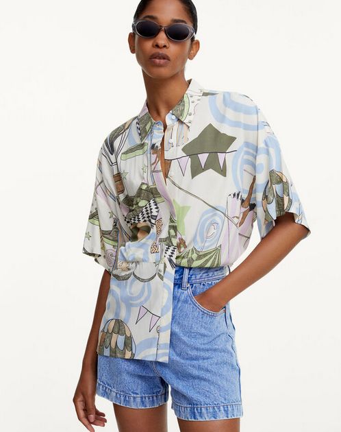 Esta camisa que puedes ver en la imagen es una de las prendas que más se están vendiendo en las últimas semanas en cualquiera de las tiendas de Parfois. Es de manga corta, tiene un sistema de cierre de botones en la parte frontal y un estampado que favorece mucho. Además sale muy bien de precio. Piensa que si te decides a comprarla tan solo vas a tener que pagar por ella 25’99 euros.