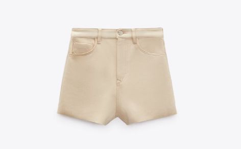 La última prenda de Zara que os vamos a presentar son estos shorts de efecto ante. Son unos shorts de tiro alto con cinco bolsillos. Bajo acabado sin costura tiene un cierre frontal con cremallera y botón metálico. Se encuentra en un color crudo, está rebajado en un 73%, y su precio definitivo es de 5,99 euros. También se encuentra en diferentes tallas y también está hecho en Marruecos, como muchos de las prendas que tiene Zara. Como el resto de sus compañeros, también se encuentra contribuyendo a los Objetivos de Desarrollo Sostenible de Naciones Unidas.