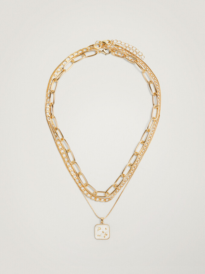 Para la dama fina, elegante que siempre desea resaltar su estilo y belleza, Parfois tiene el conjunto de collares combinado con colgante esmaltado. Una combinación perfecta con cadenas en diferentes tejidos en color dorado, haciendo perfecto contraste con el colgante, en un blanco brillante.