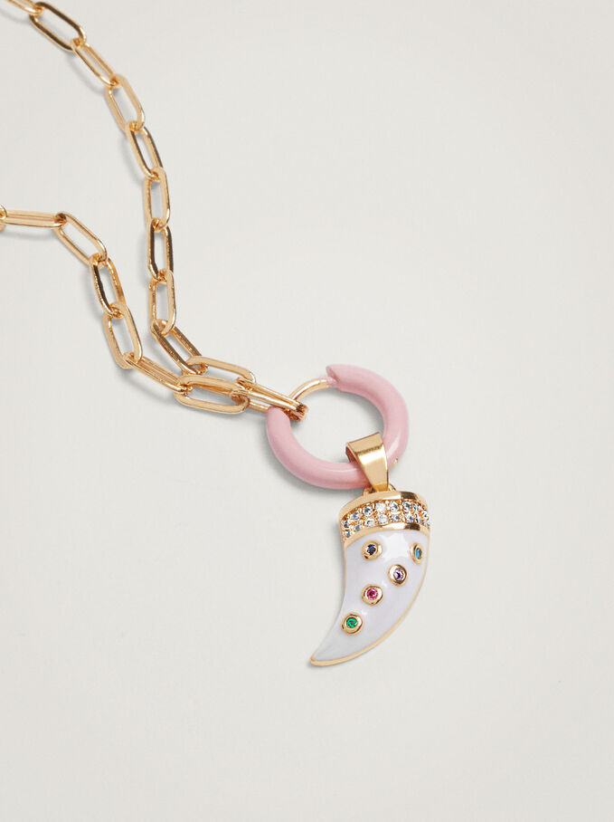 El mismo precio que la tobillera anterior tiene también este otro producto de Parfois, que no es otra cosa que un fino colgante cuya composición está formada por 60% latón, 20% circonio y 20% esmalte. La forma de cuerno de su colgante resalta bastante, y podría considerarse un buen complemento de la tobillera con la que abrimos el artículo.