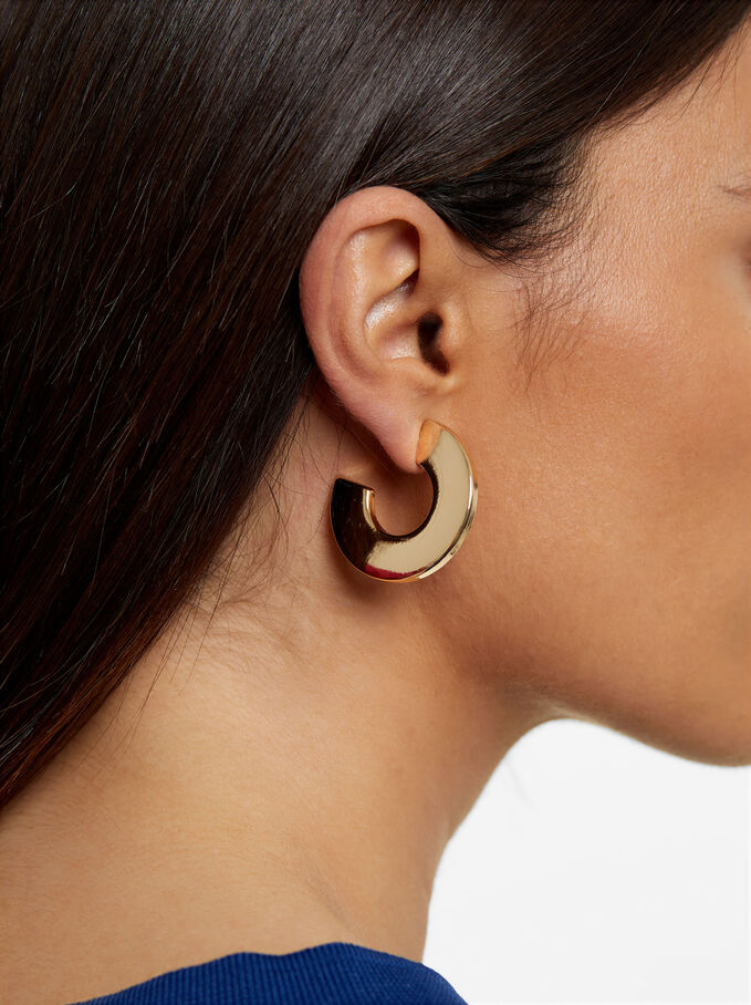 Una de las virtudes de la tienda Parfois es la de poder adquirir en ella joyas realmente baratas que dan una impresión elegante. Incluso que en ocasiones se asemejan bastante a las de otras firmas cuyos precios se disparan, sobre todo en comparación. Esos pendientes de aro dorados son un buen ejemplo de ello.