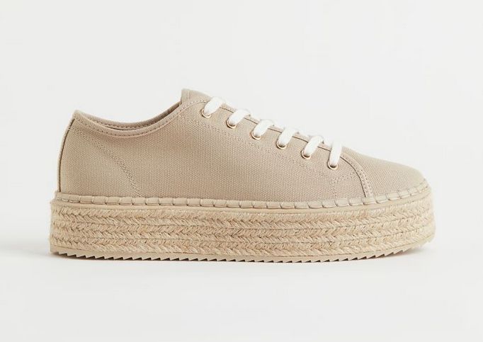 Si buscas algo más urbano y de trote para el día a día, esta combinación de alpargata con zapatilla deportiva de H&M es ideal. Son de sarga y algodón, con cordones para una sujeción perfecta. Tiene una suela de plataforma que le da al calzado un toque moderno y estiloso, y la entresuela es de yute trenzado.