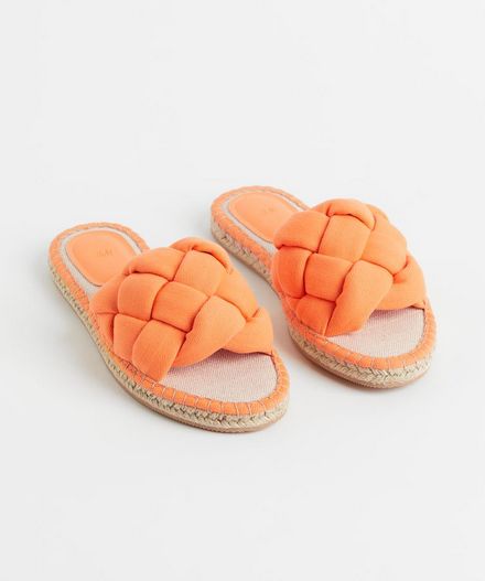 En el catálogo de alpargatas de H&M destaca este diseño por su originalidad. Son unas sandalias estilo alpargata con una tira ancha en el empeine hecha en sarga de algodón con detalles trenzados y un efecto acolchado muy en tendencia.