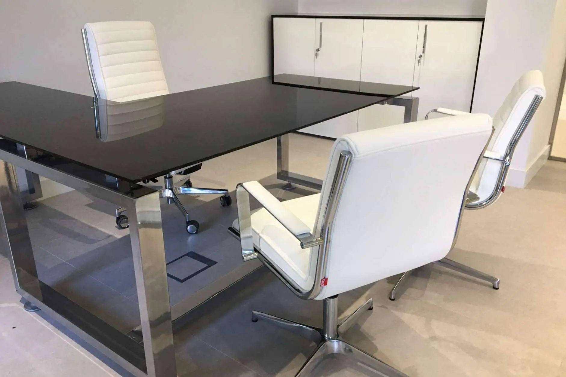 Existe una gran variedad de sillas en el mercado. Generalmente, los interioristas recomiendan que tanto la silla de oficina como la del cliente tengan una misma tonalidad estética, para que el espacio sea más agradable visualmente. En este sentido, la colección de sillones de Office Deco se puede adquirir de forma completa, comenzando con la de dirección que, en este caso, es la que utiliza el prestador del servicio. En cuestiones estéticas, se puede adquirir en malla, tapizada en eco piel, semi piel y solo piel en diferentes colores, incluye brazos fijos de acero, mecanismo para el movimiento superior e inferior que se adapta al peso y una base cromada con ruedas.