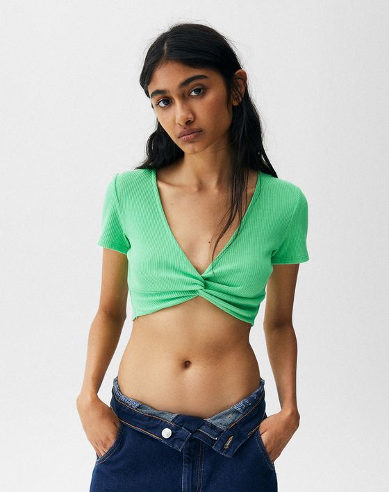7Camiseta cropped con detalle fruncido, de Pull&Bear