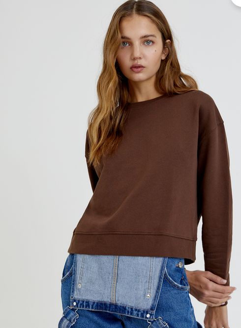 Si buscas una sudadera básica de manga larga con cuello redondo que sea elegante, económica, cómoda y barata, deberías de pasarte por cualquiera de las tiendas de Pull&Bear. Porque en cualquiera de ellas vas a poder encontrar esta que justo cumple con estas cuatro características. Está disponible en varios colores y su precio es de tan solo 7’99 euros.