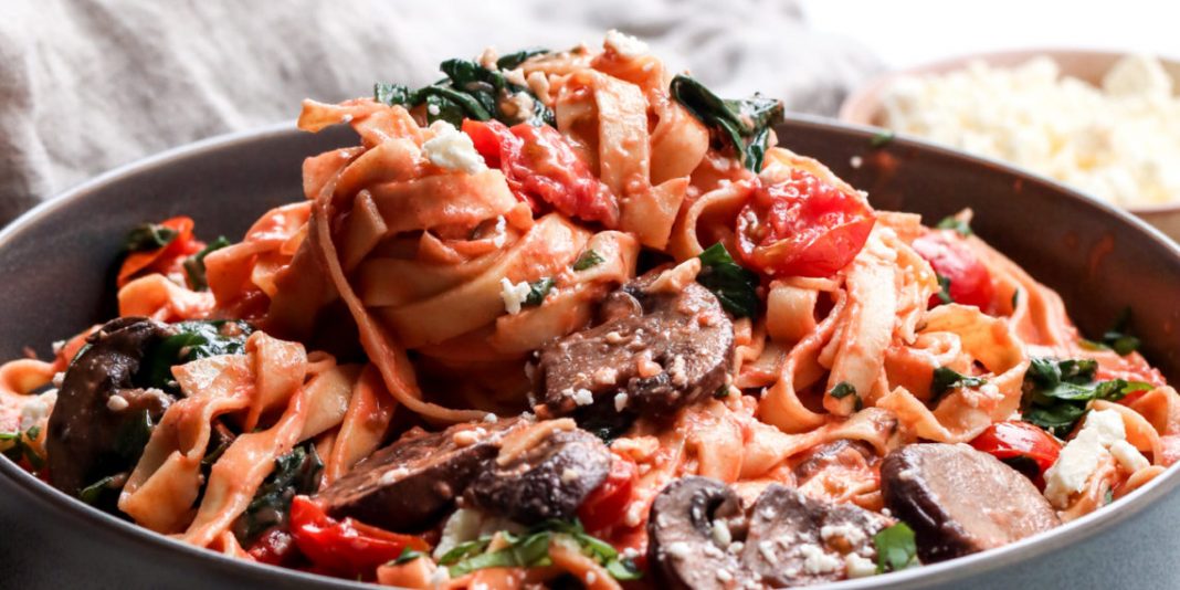 Puede que el de pasta con queso feta y tomate te suene a una receta súper complicada de hacer, pero lo cierto es que es un plato muy fácil y muy aparente, así que es perfecto para una comida familiar o para sorprender a tus invitados.