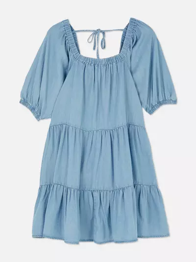 Este vestido también se lo he visto a muchas influencers y cómo para no verlo, si es que se vende solo. Este vestido tiene unos arreglos muy bonitos y un tallaje exquisito. Es un vestido vaquero con vuelo y no es corto aunque la foto te intente decir lo contrario, llega más o menos por los muslos, un poco antes de las rodillas, si te gusta este tipo de vestido y este color tan tranquilo, es la opción principal de tu verano, adelante, no te lo pierdas.