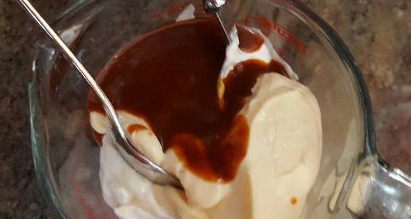 Hay miles de maneras de aliñar la ensalada de verano, desde el clásico aceite de oliva y vinagre, hasta una salsa rosa. Para esta receta, vamos a hacer una salsa a base de mayonesa y crema agria con la que te quedarás a cuadros de lo rica que está. Para empezar, cogemos un bol para echar 125 gramos de mayonesa, puede ser de bote o casera, y 125 gramos de crema agria. Mezclamos bien los dos ingredientes y añadimos el toque maestro: una cucharada de mostaza. La mostaza le va a dar un toque picante que te va a enamorar y que pasará al siguiente nivel este plato.