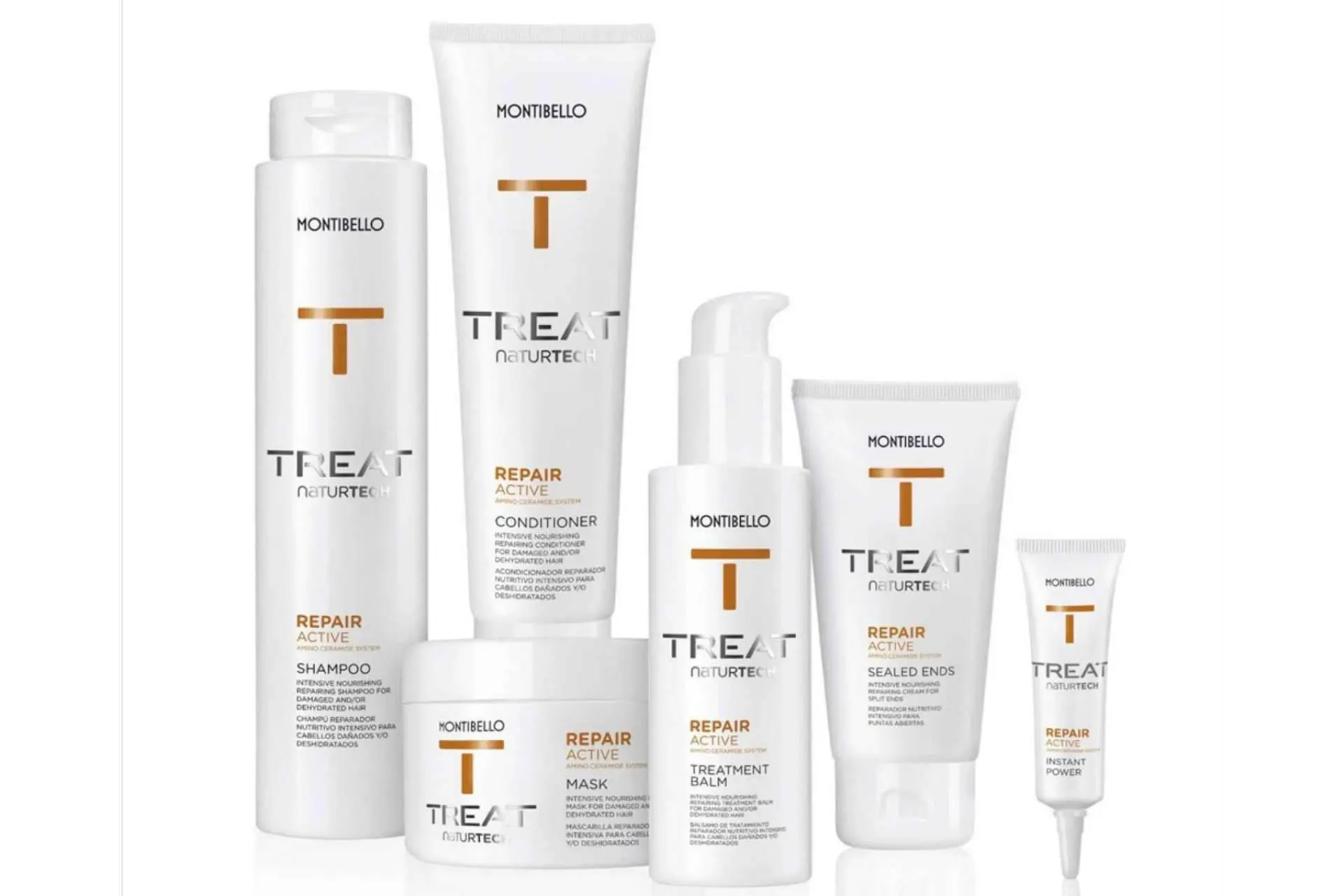 La segunda fórmula es Montibello Repair Active Treatment Balm de 150 ml, un hidratante intensivo indicado para cabellos deshidratados y dañados que requieren una reparación de su barrera protectora con propiedades que proporcionan suavidad y facilitan el peinado. El tercer producto es Montibello Treat Champú Reparador de 300 ml, un limpiador capilar nutritivo que restaura la flexibilidad y el brillo con una reparación que trata las agresiones físicas, químicas y medioambientales a las que se expone el cabello diariamente.