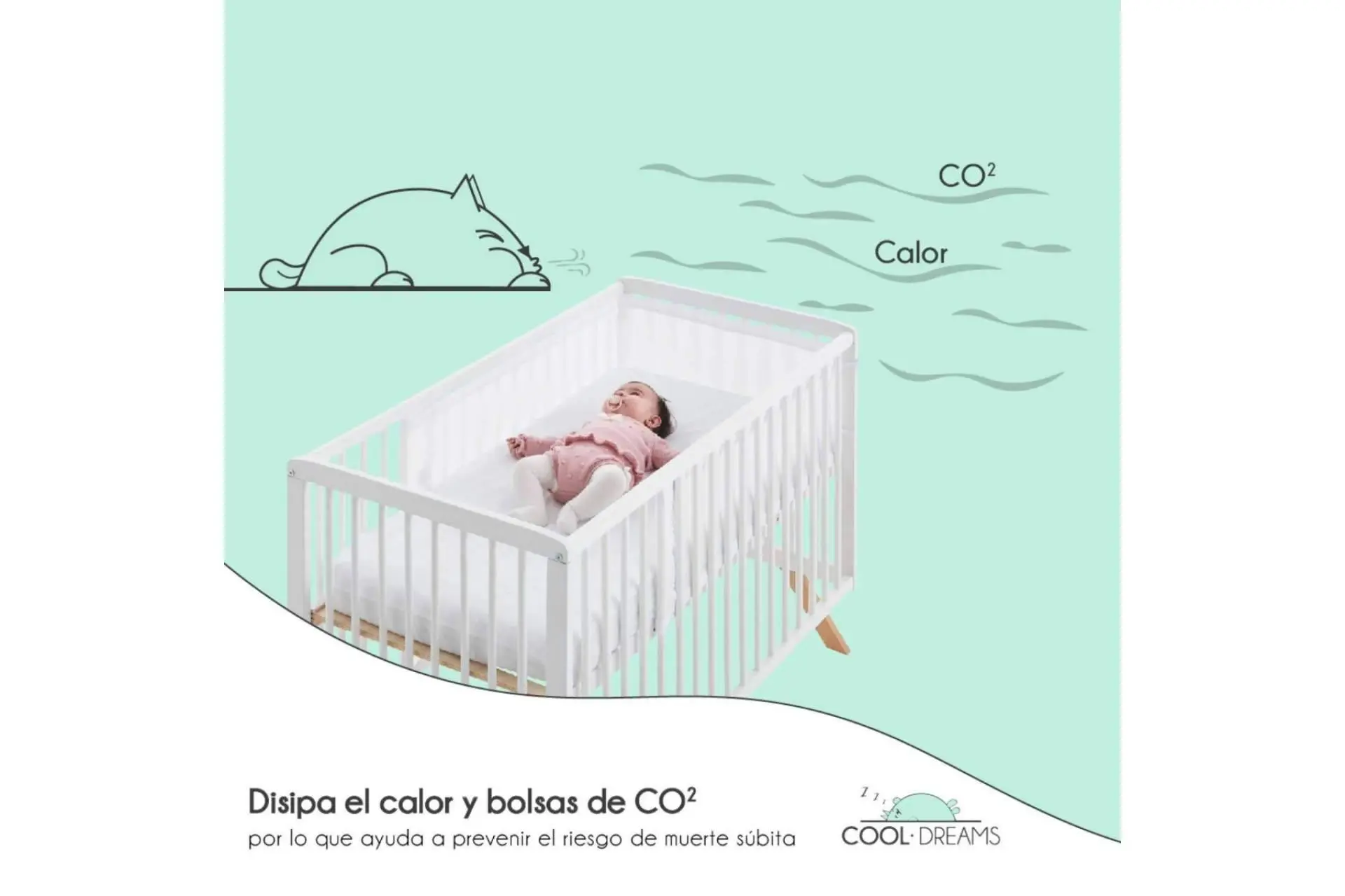 Otra recomendación importante a la hora de prevenir el SMSL es cubrir la cuna con un protector de malla transpirable, el cual evita que se concentre el calor en el interior de la cuna, facilitando la circulación del aire. En este sentido, Cool-Dreams cuenta con la malla transpirable Oxygen, producto compuesto por microsegmentos de tejido técnico 3D, los cuales promueven la evacuación del calor del cuerpo del bebé, mejorando su transpirabilidad para lograr un ambiente seco y fresco.