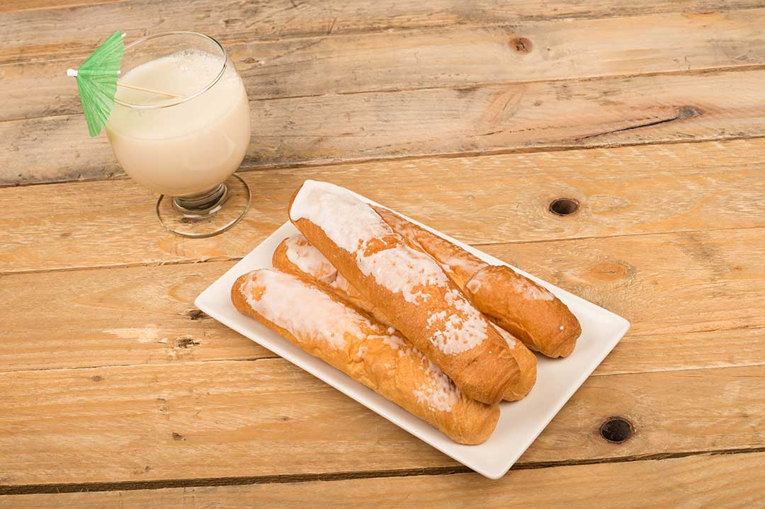 Los fartons son unos dulces típicamente valencianos, concretamente de Alboraya, que tienen una característica forma alargada, con una masa muy esponjosa, tierna y ligera, pensada especialmente para que absorba la horchata cuando se moja en ella. Su origen, de hecho, está ligado a esta bebida. Según cuenta la leyenda que la horchata fue calificada como ‘oro puro’ por Jaime I, por su dulzor y su refrescante sabor. A partir de entonces, los horchateros valencianos comenzaron a buscar el dulce perfecto para acompañar a esta tradicional bebida.