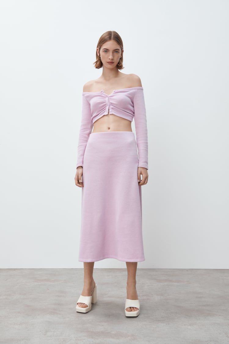 No puede faltar para terminar tampoco una falda, para llevarte en las últimas rebajas todo tipo de prendas y renovar tu armario de forma adecuada. Esta falda midi evasé soft tiene un descuento del 69% y se queda en precio en tan solo 5,99 euros. Si, una falda sencilla pero elegante y favorecedora por menos de 6 euro. Es una falda midi de tiro alto y cintura elástica con bajo acabado en línea evasé.