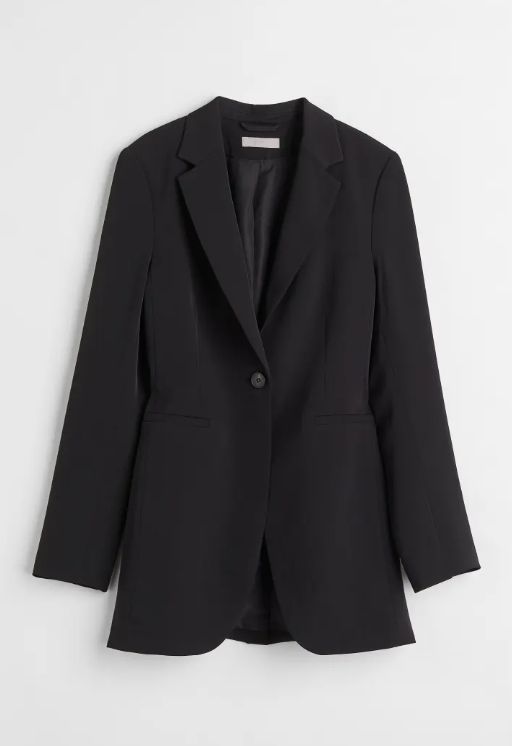 Si la primera americana de la lista no te ha convencido y buscas un estilo más moderno, la americana larga de H&M es la solución a tus problemas que estabas buscando. Por el módico precio de 39,99 euros, un poco más cara que la otra opción, puedes comprarte esta prenda que está disponible en color negro y crema. Tiene un cierre de botones con un único botón, un corte recto, con la parte de atrás que llega por debajo de la cintura, unos puños sin ajustar y unos botones decorativos en las mangas.