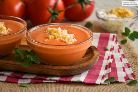 Son dos los principales trucos que tendremos que usar para hacer un buen salmorejo sin pan, y que salga igual que si le hubiéramos añadido este mítico ingrediente. El primero de ellos es usar tomates muy carnosos y dejarlos escurrir hasta que suelten toda el agua que lleven, y queden lo más secos posibles. Esto no es suficiente para que este salmorejo sin pan se quede espeso, por lo que tendremos que añadirle también el segundo truco. Este será añadirme huevo cocido a la receta. El huevo duro actuará como espesante y nos dará una textura idéntica a la del tradicional.
