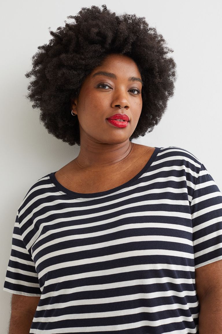 La colección de tallas grandes de la firma sueca cuenta con este interesante pack de dos camisetas que combina dos modelos diferentes, pero que también tienes disponible con las dos camisetas iguales.