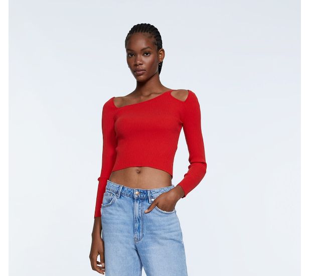 Vamos con un jersey, esa prenda de lo más otoñal. Ya sabes que tienes que empezar en el cambio de armario por primar esta prenda respecto a las camisetas, por ejemplo. Stradivarius te ofrece este precioso modelo muy diferente al típico jersey de toda la vida. Es de cuello redondo con detalle de abertura y manga larga y disponible en varios colores: negro, crudo o rojo vivo. El precio se queda en 15,99 euros.